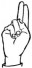 На ћирилици написано БУДИМИР ВАСИЛИЈЕВИЋ састоји се из 18 слова [?]. Исписано ћириличном једноручном азбуком за глувонеме: